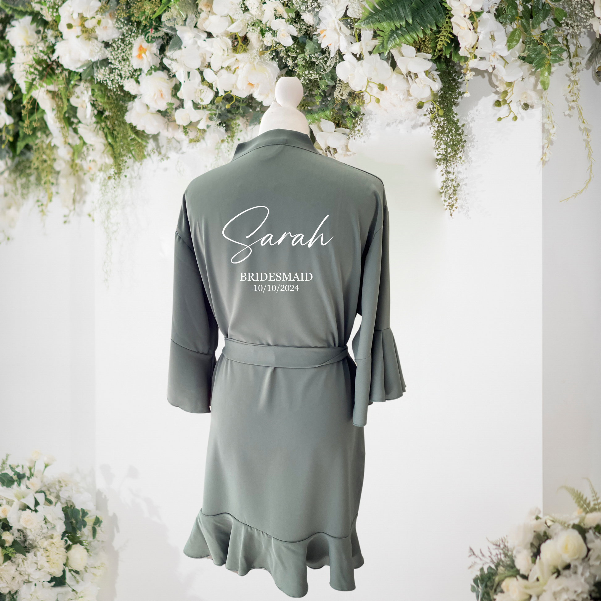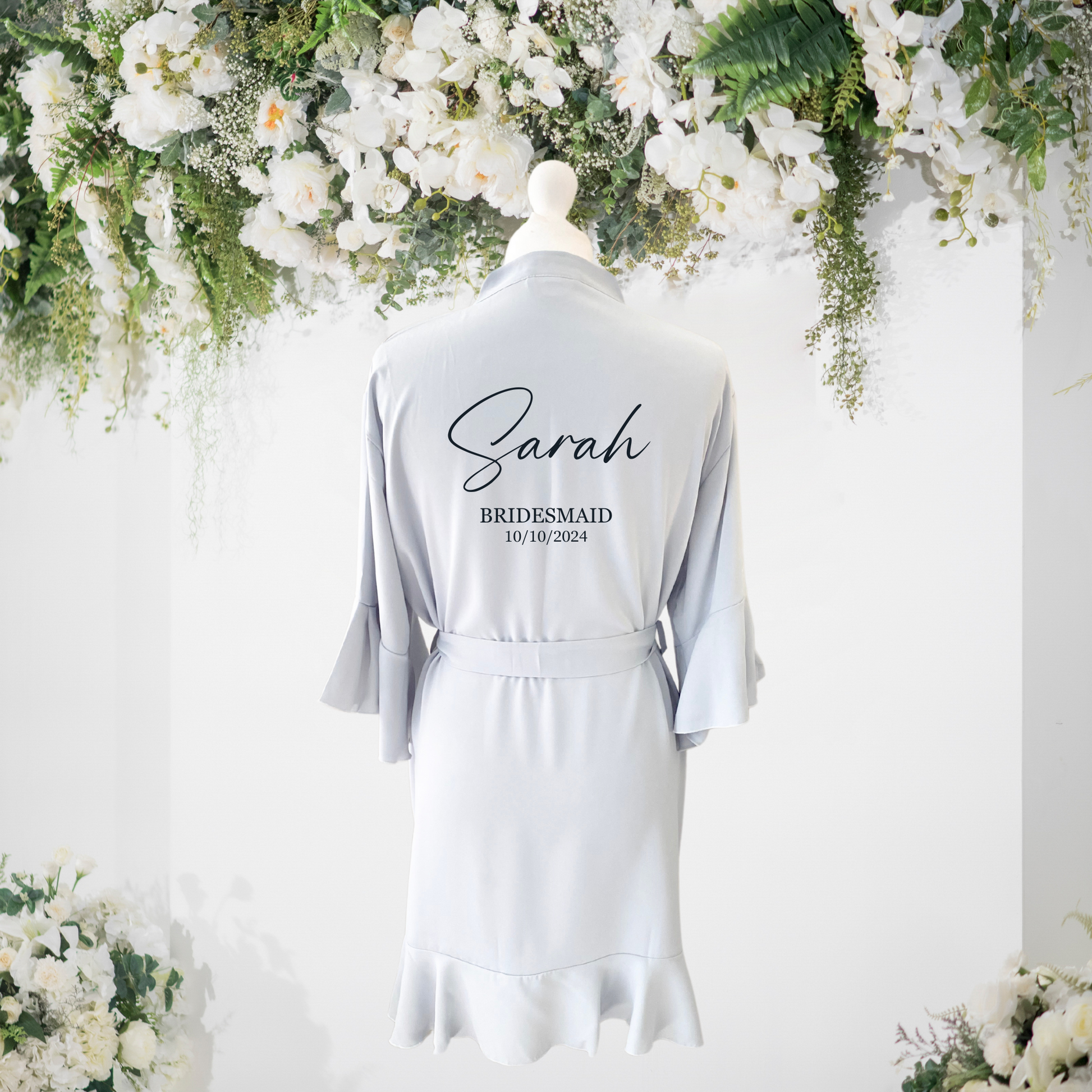 Our crepe satin bridal party robes are made from a soft luxurious material for a modern elegant look on your wedding morning. Perfect for the bride and her whole wedding party.